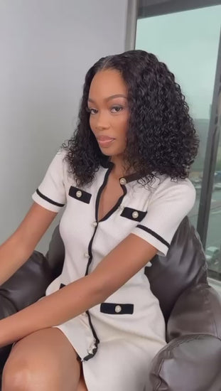 Experience natural-looking curls with our Water Curl Wig! This 12-inch human hair wig features a frontal for a seamless and realistic hairline. Enjoy the versatility and convenience of a wig that looks and feels like your own hair. Perfect for any occasion.